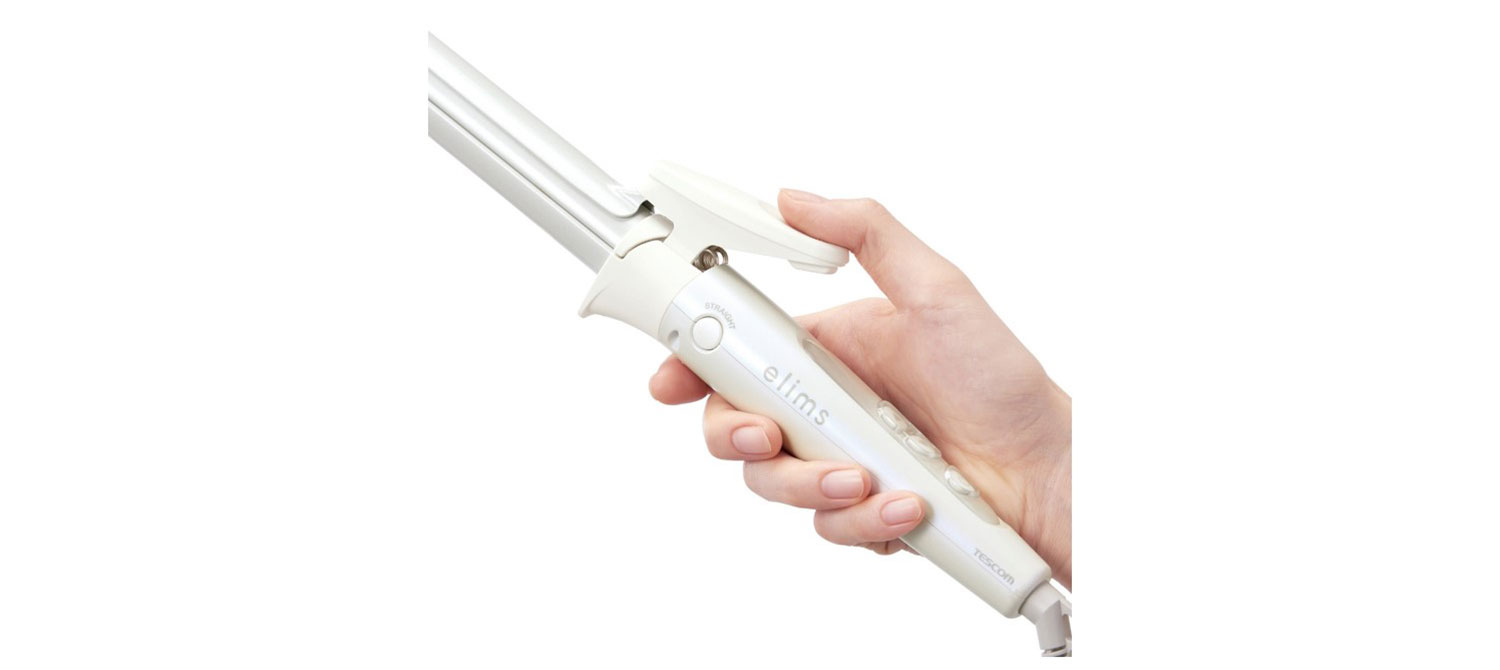 一般的なカールアイロンのバレル(髪を巻きつける部分)が開き、開いた部分に髪を優しく挟み込むことでストレートヘアに仕上げます。 |