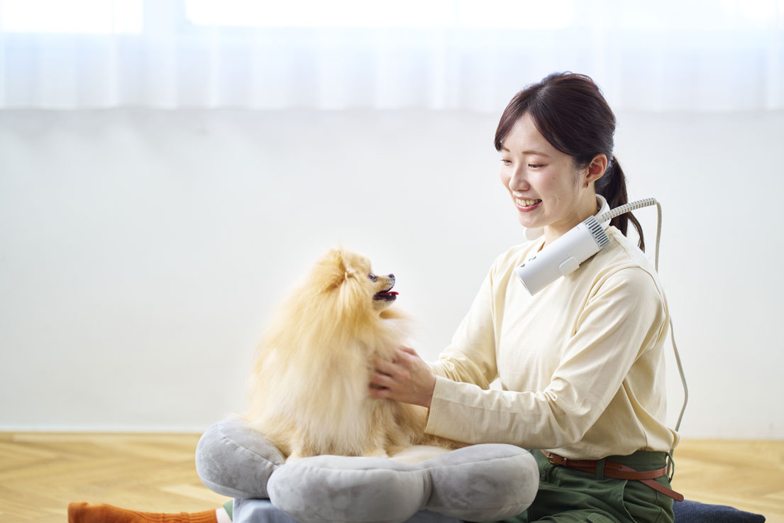そのため、風が当たっている部分だけ熱く感じたり、音や風にビックリして逃げようとしたり、身を固くしたりと、ペットにとってはちょっと緊張する時間になりがちです。抱えたり、なだめながら乾かすにはなかなかの長丁場。ペットにとっても飼い主にとっても、頑張りどころが多くなってしまいます。