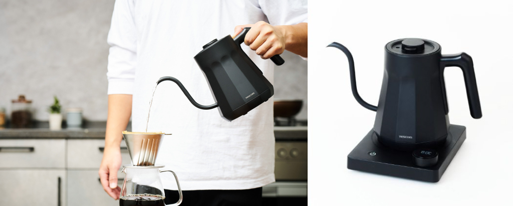 テスコム電機株式会社(本社:東京都千代田区、代表取締役社長:葉田 順治、以下テスコム)は、独自のノズル形状により、お湯の流れと注ぐ量を狙い通りにコントロールでき、バリスタ気分でおいしいコーヒーを淹れられる「電気ケトル TKE69A-K」を12月上旬より新発売いたします。