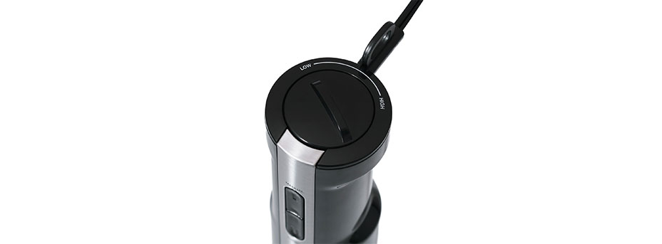 - 食材の状態や仕上がりの好みに合わせて速度を調整することで、狙いの食感に。高速でブレンドすると細かくなめらかに、低速では砕き過ぎを防いで粗めに仕上げ、風味と食感を保てます。本体上面のつまみを回して、好みの速度を無段階で調整できます。