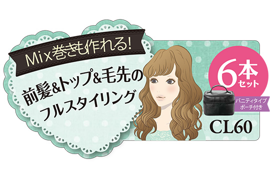 | セットタイプ | 6本タイプ ・前髪用カーラー×1 ・26㎜径カーラー×2 ・32㎜径カーラー×2 ・38㎜径カーラー×1 |