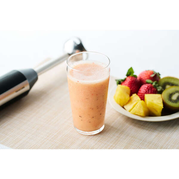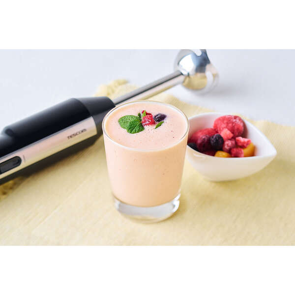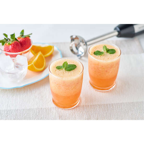 ブレンダーの「つぶす・まぜる・砕く」調理でスムージーやポタージュ、スープづくりがより簡単に。400Wのハイパワーモーターと、縦刃で大きな食材を砕き横刃でなめらかに整える4枚刃を採用。硬い氷や冷凍果実にも対応し、フローズンスムージーやシェイク、スムージーボウルなどの冷たいメニューまで本格的に楽しめます。さらにトマトソースやドレッシングもムラなく攪拌でき、仕上がりの質が上がります。