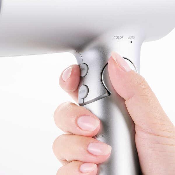 髪色を長持ちさせながら速乾も叶える。熱ダメージによるヘアカラーの退色を抑えるセンシング機能を搭載したマイナスイオンヘアドライヤーです。独自設計の「まとまるノズル™」が髪のまとまりをアップ。大風量2.0m3/分によりスピード乾燥させ、すばやくまとまりのあるヘアドライを実現します。