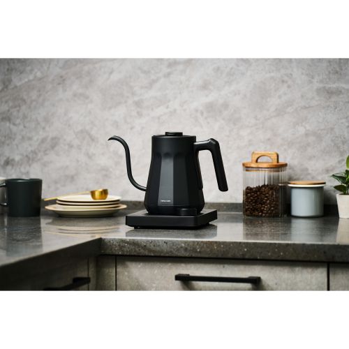 自宅でバリスタ気分を味わいながら、こだわりの一杯を淹れられるドリップケトル。独自のノズル形状により、お湯の流れと注ぐ量を狙いどおりにコントロールできます。2人分にちょうどよい0.6Lで、休日のコーヒータイムやティータイムをゆったり楽しめます。